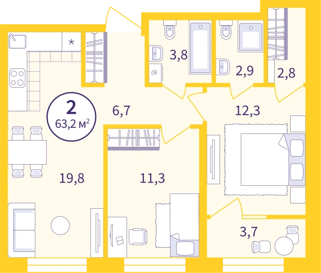 Первая очередь проекта на ВИЗе — два дома: высотная доминанта и комфортный малоэтажный дом. Приветливый характер архитектуре всего комплекса придают мягкие, натуральные оттенки фасада и ритмичная сетка увеличенных окон.