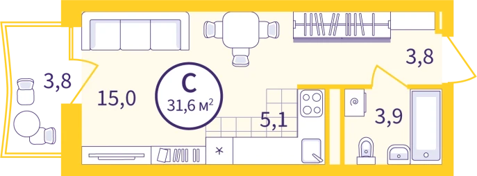 31.6 м²