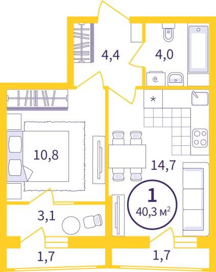 1-к Квартира