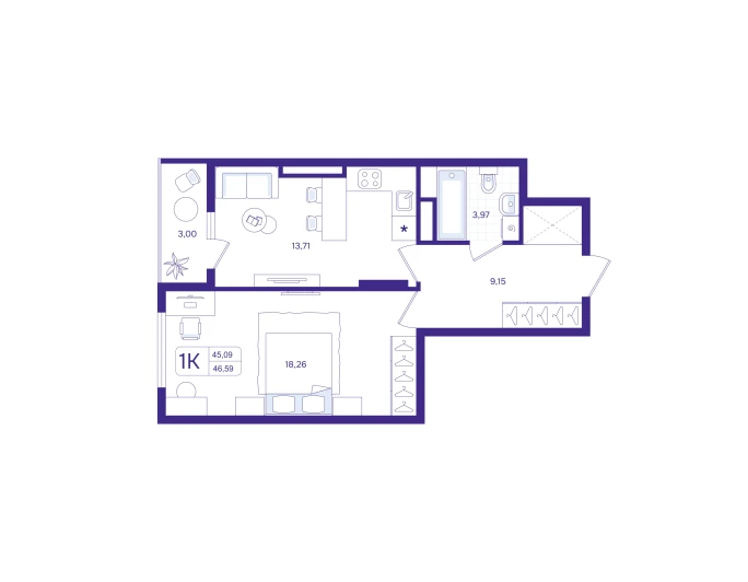 №107 / 46.59 м²