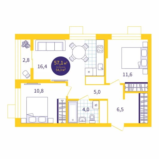 57.1 м²